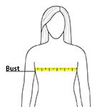 | Bust | 30-32 | 32-33 1/2 | 33 1/2-35 1/2 | 35 1/2-37 1/2 | 37 1/2-39 1/2 | 39 1/2 - 41 1/2 |